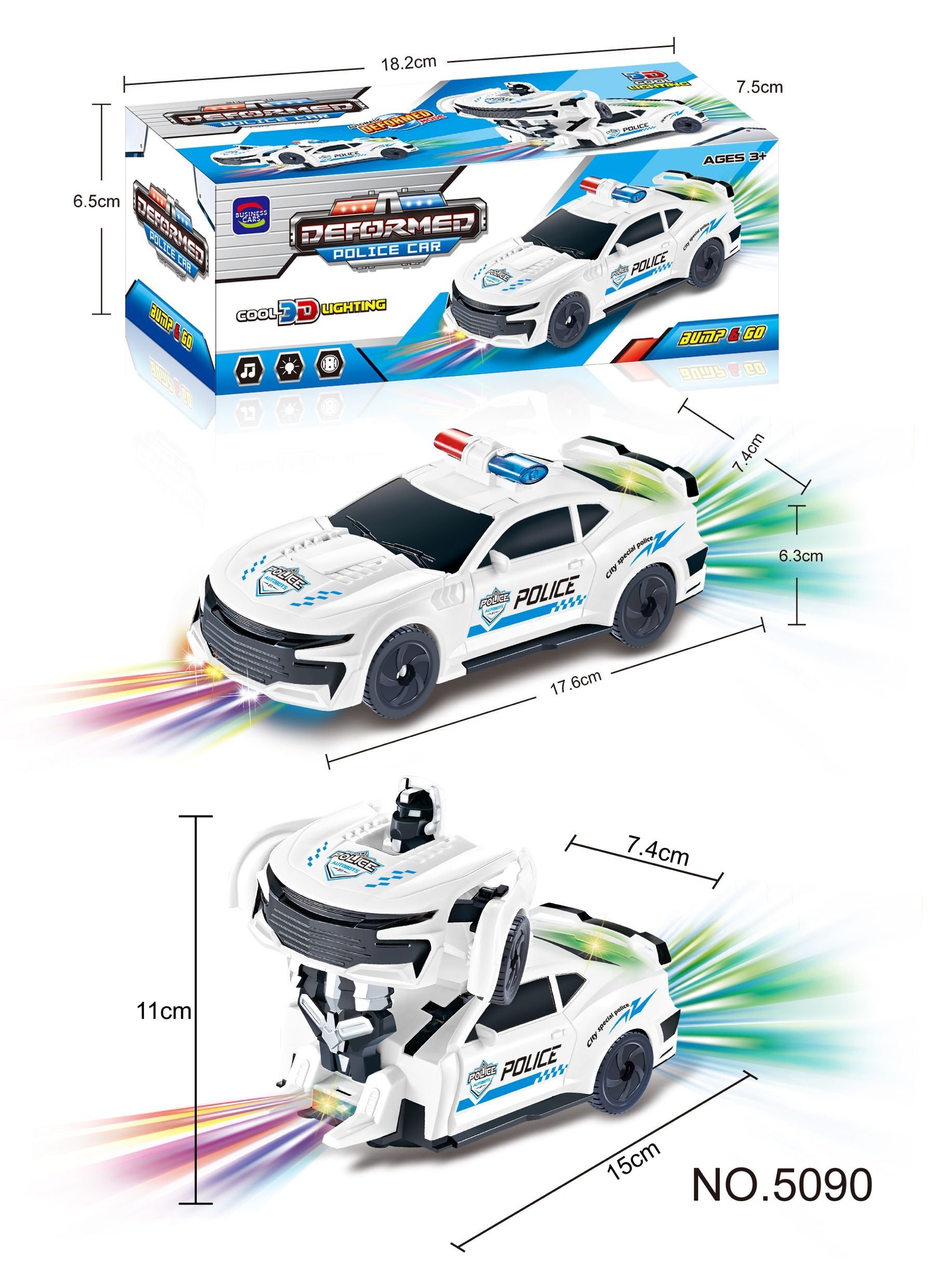 A thrilling police car toy that transforms with the push of a button! Battery-powered with flashing lights, sirens, and smooth motion. Watch it shift from car to robot mode for double the fun. Perfect for action-loving kids!