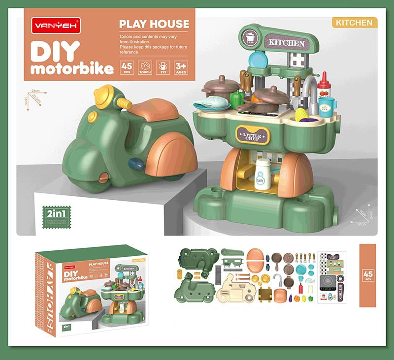 This 45-piece kitchen play set comes in a clear box, making it easy to store and display. The set includes a wide variety of kitchen utensils, cookware, and accessories, giving children everything they need to create their own pretend kitchen adventures. With vibrant colors and realistic details, this set enhances imaginative play and helps develop fine motor skills. Ideal for young aspiring chefs, the set encourages creativity and teaches children about cooking, food preparation, and kitchen organization in a fun and interactive way.