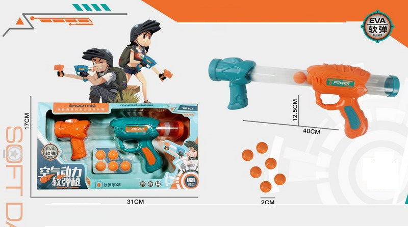 Get ready for action-packed play with the Soft Bullet Gun set! This toy blaster set, neatly arranged in a display box, comes with soft foam bullets that ensure a safe and thrilling experience for kids. Perfect for target practice, friendly competitions, or imaginative adventures, the Soft Bullet Gun set promotes active play and coordination skills. Whether for solo or group fun, this set is a must-have for any toy collection.